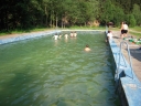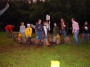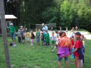I dnešek jsme věnovali oddílům. Holky z jedničky například vyrazily se svými démony a plyšáky do lesa, naaranžovaly je na mechu či kapradí a potom si je pěkně vyfotily. Taky se fotily oddíly. Po svačině si jednička i s klukama ze dvojky vyzkoušeli výsadek - odvedli jsme děti se zavázanýma očima z tábora, aby posléze našly cestu zpět. Vedle dalších oddílových činností celý tábor vyplnil obsáhlý dotazník - to vše jako příprava na večerní program u táboráku s názvem "pět proti pěti". Úkolem národů bylo trefit nejčetnější odpovědi. ... Přestože nám málem program zrušila silná průtrž mračen, počasí se naštěstí umoudřilo a soutěžní večer se konal u táboráku (i když nezapáleného :-). Úkolem soutěžících bylo uhádnout, jaká odpověď byla na danou otázku v dotazníku nejčastější. A že to pěkně odsejpalo, děti stihly i procházku nočním lesem. Ač nešlo o žádnou stezku odvahy, rotaviry hlídkující u stožáru k pomazlení věru nebyly.