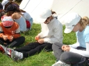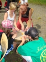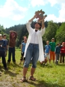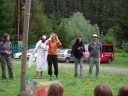 Vědci pojali rozcvičku po svém, ale myslím že zaujali. Zaujali také svojí dopolední hrou - vysvětlování bylo názorné a tedy i dlouhé, protože sebemenší chybička mohla úsilí sta chytrých hlaviček, dvou set šikovných ručiček a stejného počtu rychlých nožiček zhatit. Zásilky ukryté ve složených hlavolamech se naštěstí dostaly do správných rukou, luštitelé vše správně rozluštili, ale pořadí nakonec nejvíce ovlivnily sázky. Národy si na Vědce nevěřily a všechny vsadily na třetí místo. Patovou situaci rozlouskli Samojedi, kteří obětovali svoji sázku ve prospěch Romunů, Medvědům tak zbyly oči pro pláč.