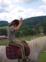 První čtyři oddíly si zopakovaly loňský výlet do Stašova na koníčky, jenom bez zběsilé záchranné akce, kterou loni zapříčinil nenadálý déšť. Cestu zpátky jsme tedy vzali po nevyzkoušených polňačkách. Spoluprací mapy, orientačního smyslu a trochy odvahy jsme docílili optimální trasy, parkrát jsme si zahančovali a do tábora jsme se spustili rovnou z protějšího kopce.