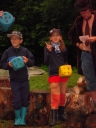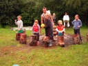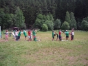 I dnešek jsme věnovali oddílům. Holky z jedničky například vyrazily se svými démony a plyšáky do lesa, naaranžovaly je na mechu či kapradí a potom si je pěkně vyfotily. Taky se fotily oddíly. Po svačině si jednička i s klukama ze dvojky vyzkoušeli výsadek - odvedli jsme děti se zavázanýma očima z tábora, aby posléze našly cestu zpět. Vedle dalších oddílových činností celý tábor vyplnil obsáhlý dotazník - to vše jako příprava na večerní program u táboráku s názvem "pět proti pěti". Úkolem národů bylo trefit nejčetnější odpovědi. ... Přestože nám málem program zrušila silná průtrž mračen, počasí se naštěstí umoudřilo a soutěžní večer se konal u táboráku (i když nezapáleného :-). Úkolem soutěžících bylo uhádnout, jaká odpověď byla na danou otázku v dotazníku nejčastější. A že to pěkně odsejpalo, děti stihly i procházku nočním lesem. Ač nešlo o žádnou stezku odvahy, rotaviry hlídkující u stožáru k pomazlení věru nebyly.