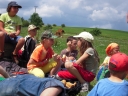 První čtyři oddíly si zopakovaly loňský výlet do Stašova na koníčky, jenom bez zběsilé záchranné akce, kterou loni zapříčinil nenadálý déšť. Cestu zpátky jsme tedy vzali po nevyzkoušených polňačkách. Spoluprací mapy, orientačního smyslu a trochy odvahy jsme docílili optimální trasy, parkrát jsme si zahančovali a do tábora jsme se spustili rovnou z protějšího kopce.