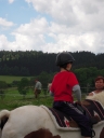 První čtyři oddíly si zopakovaly loňský výlet do Stašova na koníčky, jenom bez zběsilé záchranné akce, kterou loni zapříčinil nenadálý déšť. Cestu zpátky jsme tedy vzali po nevyzkoušených polňačkách. Spoluprací mapy, orientačního smyslu a trochy odvahy jsme docílili optimální trasy, parkrát jsme si zahančovali a do tábora jsme se spustili rovnou z protějšího kopce.