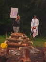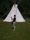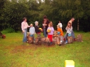 I dnešek jsme věnovali oddílům. Holky z jedničky například vyrazily se svými démony a plyšáky do lesa, naaranžovaly je na mechu či kapradí a potom si je pěkně vyfotily. Taky se fotily oddíly. Po svačině si jednička i s klukama ze dvojky vyzkoušeli výsadek - odvedli jsme děti se zavázanýma očima z tábora, aby posléze našly cestu zpět. Vedle dalších oddílových činností celý tábor vyplnil obsáhlý dotazník - to vše jako příprava na večerní program u táboráku s názvem "pět proti pěti". Úkolem národů bylo trefit nejčetnější odpovědi. ... Přestože nám málem program zrušila silná průtrž mračen, počasí se naštěstí umoudřilo a soutěžní večer se konal u táboráku (i když nezapáleného :-). Úkolem soutěžících bylo uhádnout, jaká odpověď byla na danou otázku v dotazníku nejčastější. A že to pěkně odsejpalo, děti stihly i procházku nočním lesem. Ač nešlo o žádnou stezku odvahy, rotaviry hlídkující u stožáru k pomazlení věru nebyly.