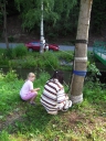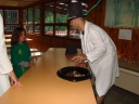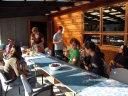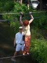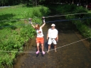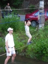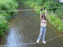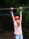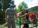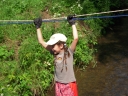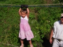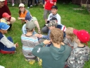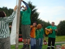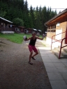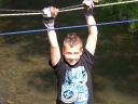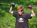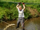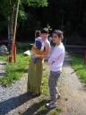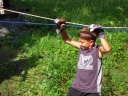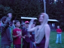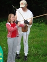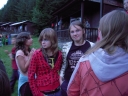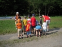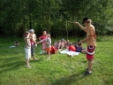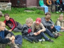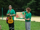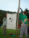 Přijely děti. Zdá se, že letošní tábor bude opravdu netradiční. Most - jediná přístupová cesta do tábora, je uzavřen. Záhadné Magistérium se rozhodlo pro tento zdařilý kousek, aby si děti pomalu a jistě zvykaly na jeho nevyzpytatelnou pozici. Děti ručkují po provazech přes řeku, rodiče i s kufry po žebříku. Pro jistotu si všechna dítka označkuje zlatým páskem na zápěstí. Probíhá vcelku zdařilý chaos s vynášením zavazadel, ale vše je zvládnuté na výbornou. První oběd korunovaný lahodným řízkem probíhá již v semknutém duchu jednotlivých oddílů. Odpoledne se mají všichni milí účastníci tábora v klidu seznámit jak se svými kamarády, tak s táborovým prostředím a režimem. Každý z oddíláků volí vhodnou formu startovního odpoledne letošního tábora. Nálada v táboře je pohodová a plná očekávání, cože nám rok 2009 na Svojanově přinese. S večerem přichází čas na první nástup, kde děti dostanou táborová trička a dozvídají se i téma celotáborové hry - Zlatý kompas. Po krupicové kaši, ze které se dětem dělají boule až za ušima, se na verandě štábu představí cestovatel Nasriel i se svým magickým démonem, coby nejlepším přítelem a ochráncem. Ukáže se i tak trochu nepříjemná a sobecká Rebeca Coulteriová, kterou doprovází démon v podobě bílé kočky. Dětem je nastíněna situace, ve které půjde o to seznámit se s dalšími skupinami soběstačných národů - Divoženek, Vědců, Medvědů, Samojedů a Romunů. Děti se vydávají po jednotlivých místech, kde na ně zmiňované národy již čekají, aby jim ukázaly, co je v nich a děti si samy zvolily, ke komu se chtějí přidat. Děti se v malých skupinkách či ve dvojičkách a trojičkách vydávají za Divoženkami,které se usídlily na hřišti. Tady se s nimi mohou seznámit při zpěvu a hře na hudební nástroje, při vábení a kouzelných zaříkáváních či drátkování na magické kameny. Některé z dětí zvolily cestu k Medvědům, kteří jako staří bojovníci předvedli své schopnosti ve zdárném boji a také svoji sílu. Děti si u nich mohly vyzkoušet střelbu z luků, odpalování míčků či smysl pro rovnováhu a kontrolu. Zkrátka a dobře, vše co se v úspěšném boji bude hodit. Samojedi, coby daší národ, nabídli svým zájemcům útulné prostředí v již postaveném tee-pee, kde nastínili své přednosti. Každý ví, že jsou výbornými znalci přírody, zdatnými běžci a výbornými všeuměly všeho druhu. Žádná z tábornických doveností jim není cizí. S Vědci se děti mohly setkat v jídelně, kde na ně čekalo věštění budoucnosti v podobě rulety Monte Carlo. Někteří hráči předpověděli barvu i 6x po sobě! Své příznivce si získali také Romuni, kočovníci na slovo vzatí se srdcem na dlani a vytříbeným vkusem pro rytmus a vše co je energické a živelné. Ti své příznivce lákali pomocí tónů na tamburíny, tak jak to k nim patří. Po necelé hodině dochází ke spravedlivému rozdělení do skupin tak, jak se děti rozhodly. Když je všem jasné, s kým stráví ve skupině celý tábor a kým se také budou moci stát, odchází s identifikační páskou příslušné barvy. Někteří hladovci si ještě jdou zobnout zbytků krupicové kaše a pak za ostatními s přáním dobré noci hezky pěkně do svých chatek a spacáčků.
