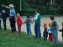První čtyři oddíly si zopakovaly loňský výlet do Stašova na koníčky, jenom bez zběsilé záchranné akce, kterou loni zapříčinil nenadálý déšť. Cestu zpátky jsme tedy vzali po nevyzkoušených polňačkách. Spoluprací mapy, orientačního smyslu a trochy odvahy jsme docílili optimální trasy, parkrát jsme si zahančovali a do tábora jsme se spustili rovnou z protějšího kopce. Další oddíly vyrazily směr Polička či Bystré, a určitě to taky stálo zato.