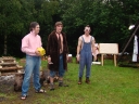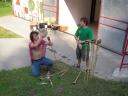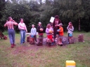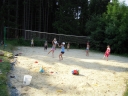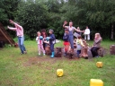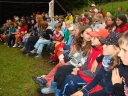 I dnešek jsme věnovali oddílům. Holky z jedničky například vyrazily se svými démony a plyšáky do lesa, naaranžovaly je na mechu či kapradí a potom si je pěkně vyfotily. Taky se fotily oddíly. Po svačině si jednička i s klukama ze dvojky vyzkoušeli výsadek - odvedli jsme děti se zavázanýma očima z tábora, aby posléze našly cestu zpět. Vedle dalších oddílových činností celý tábor vyplnil obsáhlý dotazník - to vše jako příprava na večerní program u táboráku s názvem "pět proti pěti". Úkolem národů bylo trefit nejčetnější odpovědi. ... Přestože nám málem program zrušila silná průtrž mračen, počasí se naštěstí umoudřilo a soutěžní večer se konal u táboráku (i když nezapáleného :-). Úkolem soutěžících bylo uhádnout, jaká odpověď byla na danou otázku v dotazníku nejčastější. A že to pěkně odsejpalo, děti stihly i procházku nočním lesem. Ač nešlo o žádnou stezku odvahy, rotaviry hlídkující u stožáru k pomazlení věru nebyly.